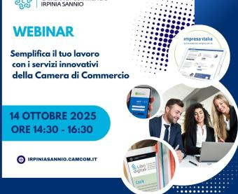 La Camera di Commercio Irpinia Sannio, in collaborazione con Infocamere, terrà un webinar per illustrare i servizi innovativi offerti dal sistema camerale per rendere più semplice, sicura ed efficiente, la gestione della tua impresa o di quella che gestisci in qualità di professionista.