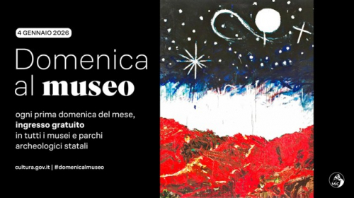 Il 4 gennaio 2026 è il giorno della #domenicalmuseo, l'iniziativa del Ministero della Cultura che consente l'ingresso gratuito, ogni prima domenica del mese, nei musei, gallerie, aree e parchi archeologici, castelli e complessi monumentali, abbazie, ville e giardini storici statali. Le visite si svolgeranno nei consueti orari di apertura, su prenotazione dove previsto.
