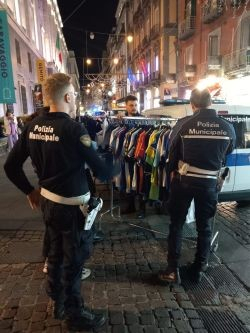 Gli agenti dell’unità operativa Avvocata hanno effettuato una serie di verifiche mirate che hanno portato al sequestro complessivo di circa 200 capi d’abbigliamento, tra magliette con marchi contraffatti e capi privi di etichettatura. Emesse 11 sanzioni amministrative per violazioni del regolamento comunale sulle occupazioni di suolo pubblico e della normativa regionale sul commercio.