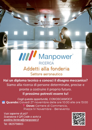 La Camera di Commercio Irpinia Sannio, in collaborazione con Manpower, ospita un Recruiting Day dedicato alla selezione di un profilo Addetto/a alla Fonderia per un’importante azienda del settore Aerospace & Defence.