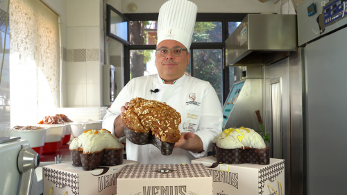 Nel laboratorio del Gran Caffè Romano ogni fase della preparazione viene curata con passione e competenza: dall’impasto alla glassatura finale con mandorle e zucchero, elementi che rendono la colomba non solo un dolce della tradizione, ma anche un prodotto di alta pasticceria.