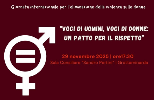 Sabato 29 novembre 2025, alle ore 17.30, nella Sala Consiliare “Sandro Pertini” di Grottaminarda si terrà l'incontro sul tema “Voci di uomini, voci di donne: un patto per il rispetto” a cura del Comune di Grottaminarda, con il patrocinio morale di numerosi importanti enti quali l’Asl di Avellino, il Piano di Zona Sociale, il Consigliere di Parità della Provincia di Avellino, la Consigliera di Parità della Regione Campania, il Gal.